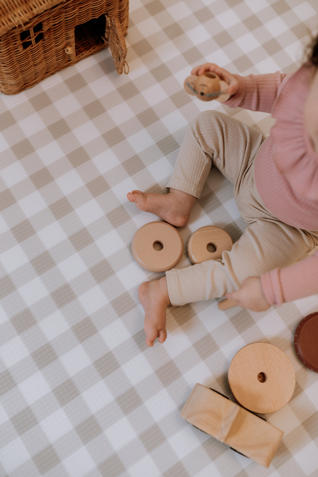 Med afdæmpede farver og enkle mønstre passer vores legemåtter ind i moderne hjem. Vælg mellem klassiske designs som Gingham Dune, de varme toner i Thy eller det legende udtryk fra Little Roads. Du finder altid et legegulv, der passer til din stil.